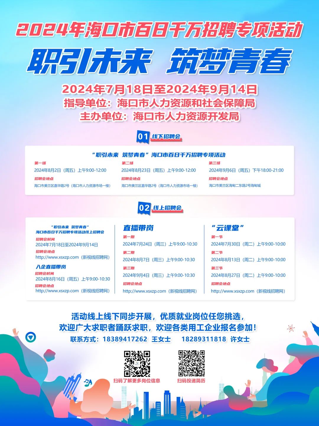 “职引未来 筑梦青春” 2024年海口市百日千万 招聘专项活动来啦!!! 求职者、用工企业速速看过来 ↓↓↓